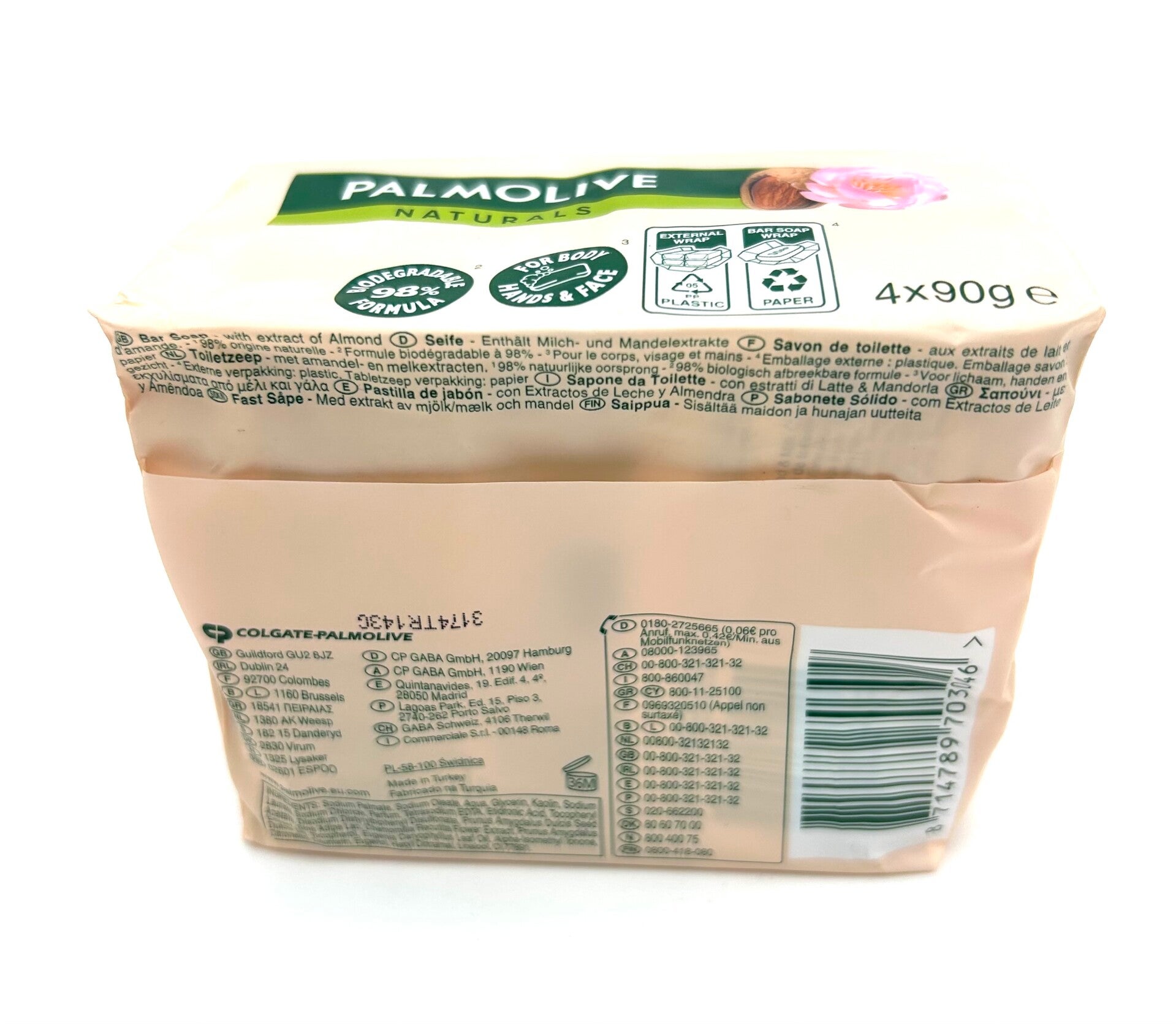 savon solide PALMOLIVE naturel aux extraits d'amande 4x90g