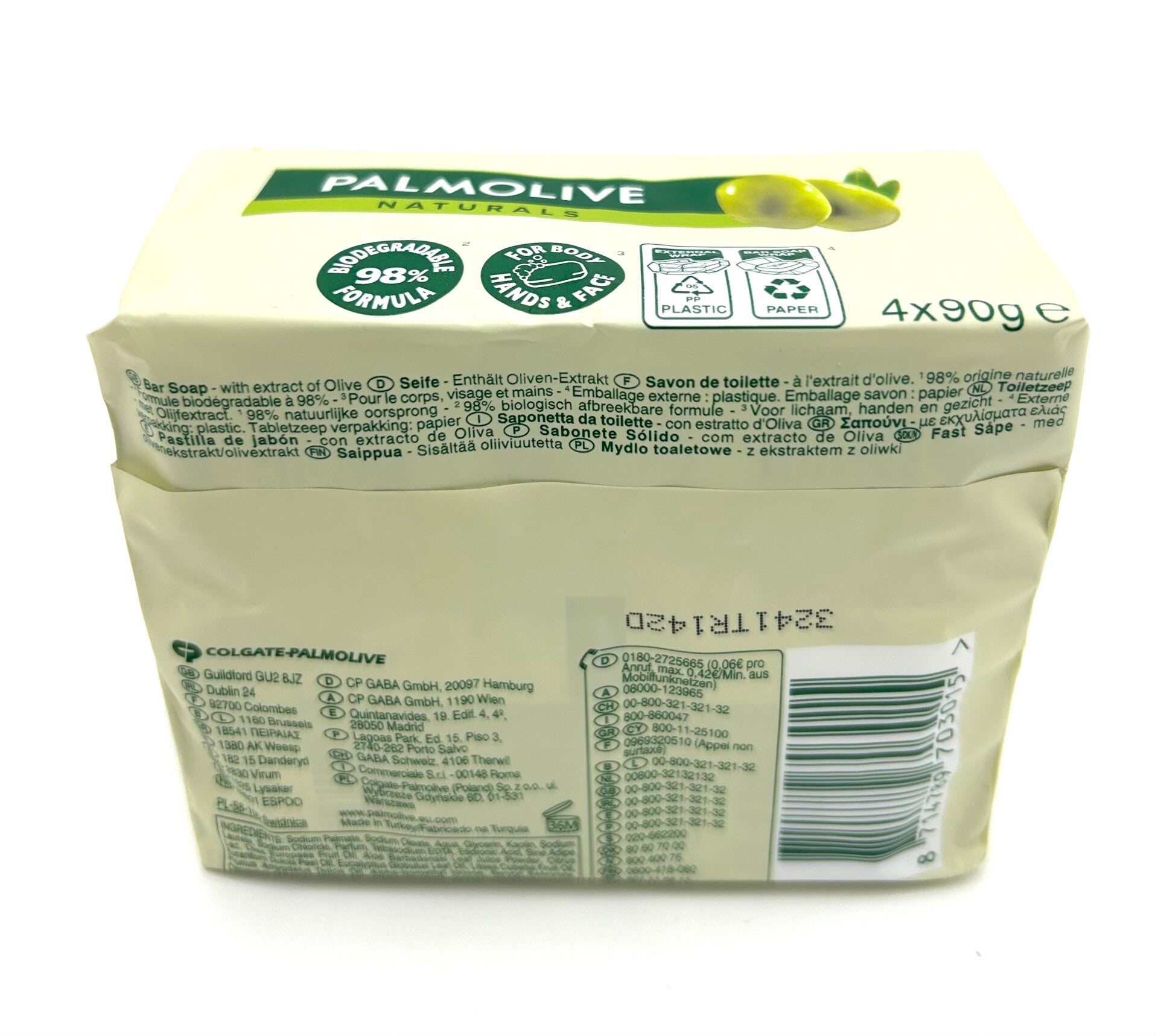 Savon de toilette PALMOLIVE à l'extrait d'olive, origine Naturelle pour le Corps, Visage et Mains