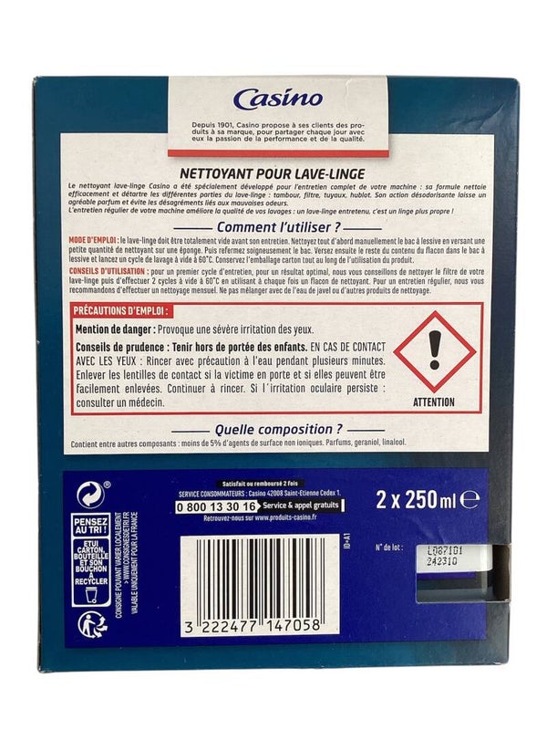 NETTOYANT LAVE-LINGE INTEGRAL a été spécialement développé pour l'entretien complet de votre machine: sa formule nettoie efficacement et détartre les différentes parties du lave-linge: tambour, filtre, tuyaux, hublot, son action désodorisante laisse un agréable parfum et évite les désagréments liés aux mauvaises odeurs.