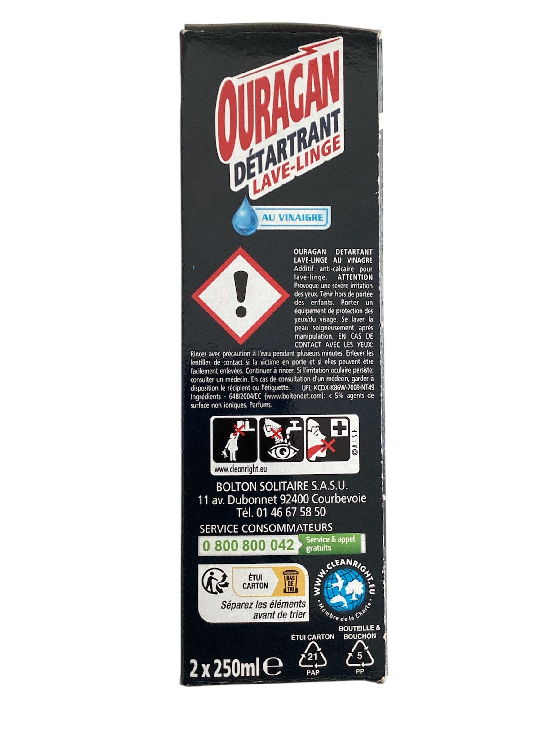 PRECAUTION: Ouragan Détartrant lave-linge au Vinaigre Additif anti-calcaire pour lave-linge.