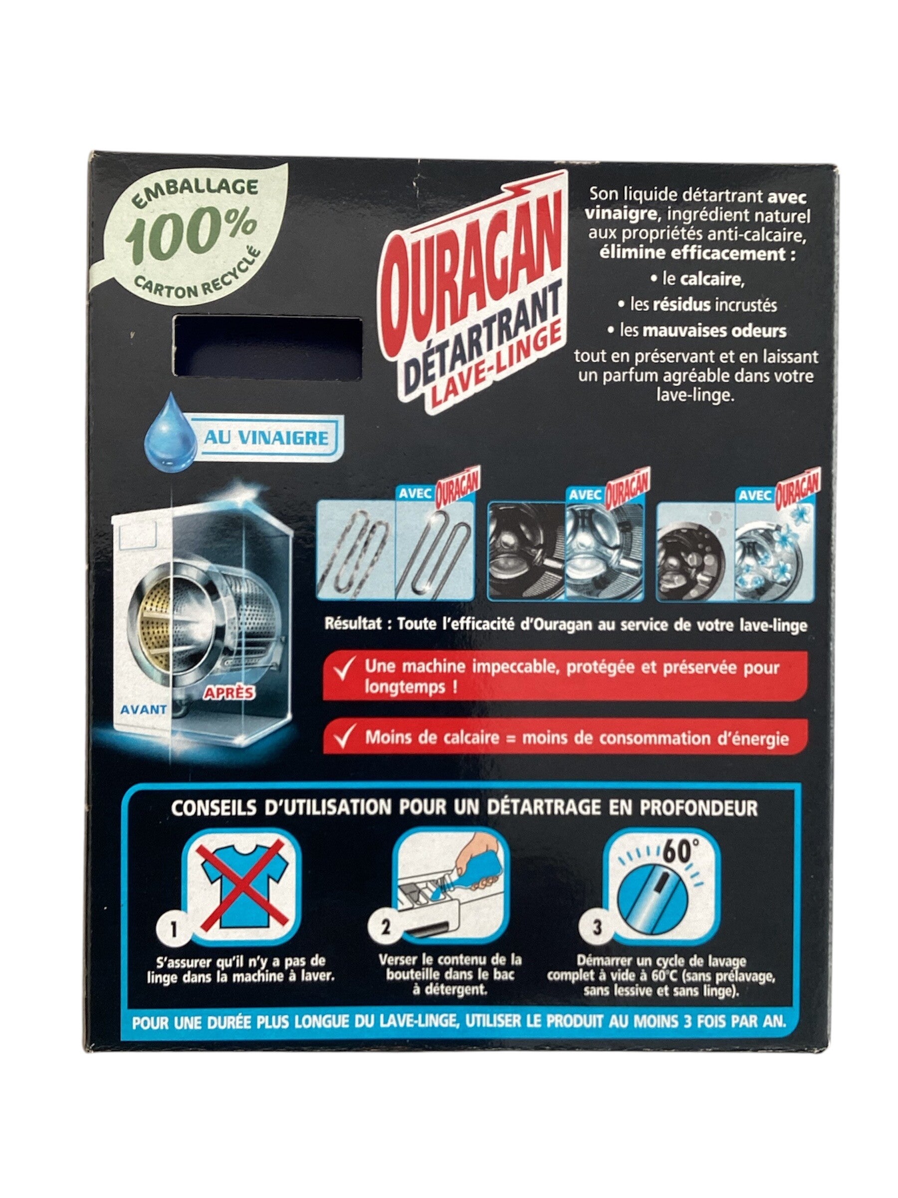 Resultat: Toute l'éfficacité d'Ouragan au service de votre lave-linge