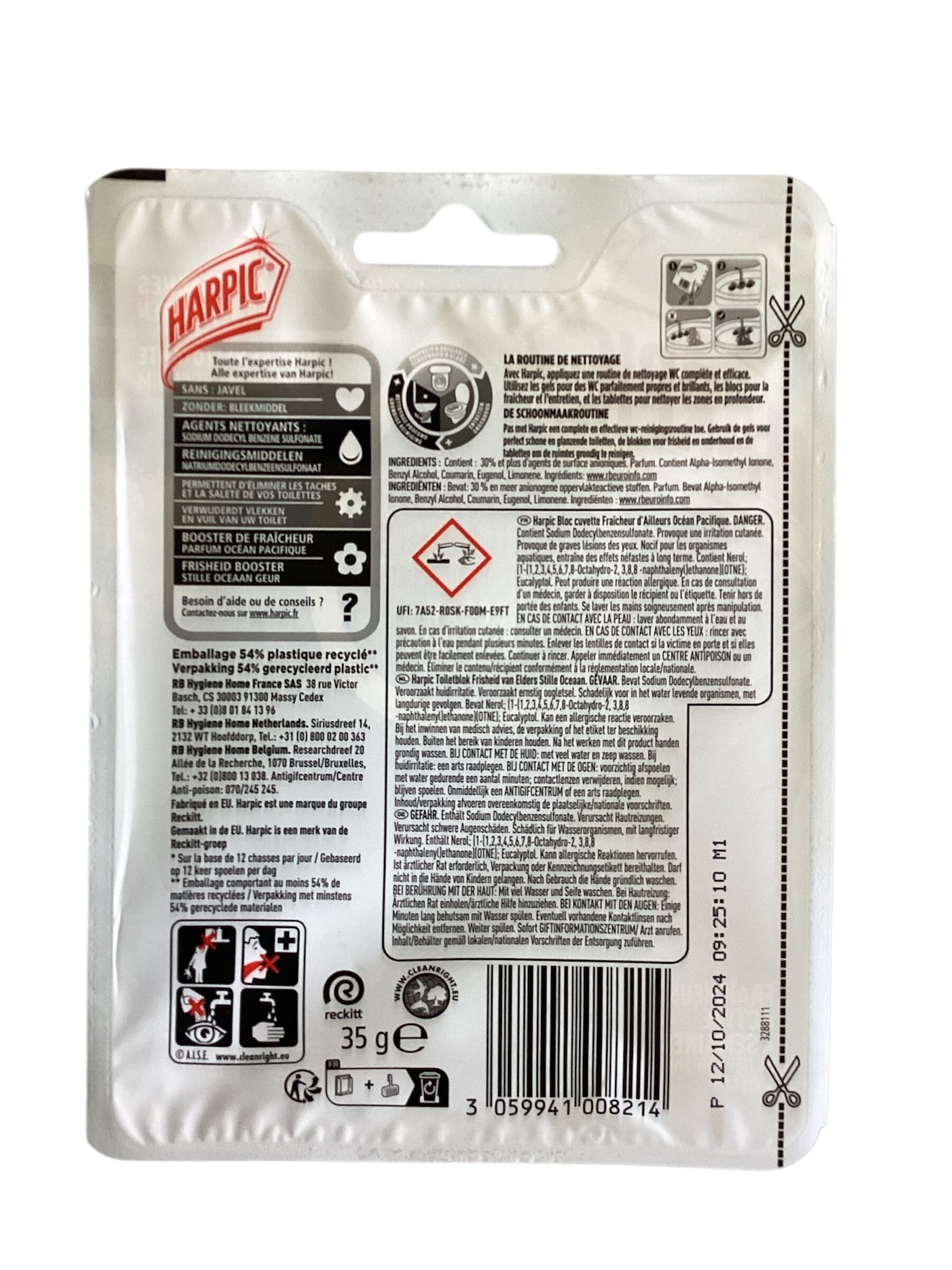 HARPIC Bloc WC- Nettoyant WC FRAÎCHEUR D'AILLEURS- Océan Pacifique- 35g