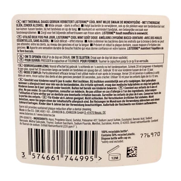 UTULISEZ DEUX FOIS PAR JOUR, LISTERINE COOL MINT GOÛT DOUX AMELIORE L'HYGIENE BUCCO-DENTAIRE-AVEC DES HUILES ESSENTIELLES, SANS OLCOOL: