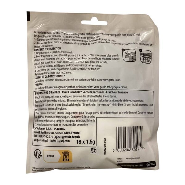 PRECAUTIONS D'EMPLOI: RAID Essentials Sachets parfumés-Fraîcheur Lavande